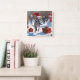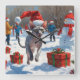 Sphynx Cat Running in Snow with Christmas Hat Square Wall Clock