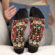 Sphynx Cat Santa Elf Christmas design on black crew socks.