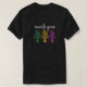 I give wanted to give this a 4 instead of a 5 because these Basic DARK T0shirts run unexpectedly SLIM or Narrow. Which is great if you do not have a potbelly, but I have a paunch. It isn't the shirt's fault that I've got a beer belly. The design and shirt itself is a quality cotton shirt. The color is more of a deep purple, but still a very pretty color. The Basic DARK T-shirts run a bit SLIMMER than the Basic Ts. The neck is a fraction narrower (or seems to be narrower) also. I'm a paunchy middle-aged woman and my neck is 12 inches (31cm) thick and the neckline fell about the same as in the photo of the man, and I had the desire to tug it a bit. So if you're a thick necked man or like loose shirts, be aware these are slimmer shirts. Once I get rid of my lockdown paunch it'll look great. The shirt washed well in cold water with no apparent bleeding. We don't have a dryer, so it hung dry. Did not shrink. Love the colors and the design. The design looks smaller on my shirt than it does on the model on-line. But still, it looks good on the shirt. The printing looks as it does on the model, just the size seems fractionally smaller. Washed garment in cold water, hung dry and design appeared unaffected.