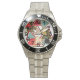 This men's watch has a Bauhaus design of rounded triangles in spice colours of gold, brown, red, beet, seafoam, tan, and off-white.. Like this design but want different colours? Message me.