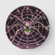 SPIDER AND WEB Red Ruby ,Green Emerald Gems Black Round Clock