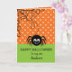 A spider Halloween son card, which you can easily personalize with your son's name. The inside of the card reads "Have a spooktacular Halloween!" which you can easily edit if wanted. The back of this son Halloween card says Halloween 2018.