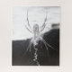 A jigsaw puzzle featuring a photo of a spider in a web.