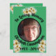 This card is designed to honour the memory of someone at a Memorial Service or a Funeral. The photo is set up as a template to be replaced with the photo of the one being remembered. Three clusters of white Spider Mum flowers are displayed on the front on a green background. "In Loving Memory" curves around the photo. The person's name curves around the bottom of the photo. Across the bottom of the card are the birth year and death year. This card can be handed out at a Memorial Service or may be sent to those who cannot attend the service. On the back is the quote, "While we are mourning the loss of our friend, others are rejoicing to meet her behind the veil," by John Taylor with two spider mum clusters. The words are set up to be personalised. The design may also be personalised with your own photo cutout if desired. If you need help personalising, please contact me.