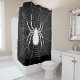 Spider web black white Halloween pattern Shower Curtain. Spiderweb Halloween elegant cool fun pattern Home Bathroom Decor. Spooky Halloween cool geometric cobweb design with big spider.