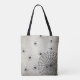 This fun tote bag has a spider web and big, spooky spiders crawling all about. Design repeats on other side. Great for Trick or Treating!