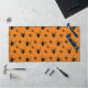 Black and Orange spider Halloween Desk Mat. Cool fun pattern with Spooky Halloween design. Custom orange with big and small scary crawling spiders.