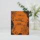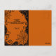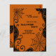 A bold Halloween background with swirling black spiderwebs on a vibrant orange base. The ornamental flourishes add a vintage gothic touch, perfect for customisable seasonal halloween postcard invitations.