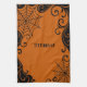 A bold Halloween kitchen towel with your customisable Name or text with swirling black spiderwebs on a vibrant orange base. The ornamental flourishes add a vintage gothic touch, perfect for seasonal halloween gifts