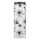 Creepy seamless Halloween pattern featuring black spiders, spider webs, and ink splatters on a white background — perfect for spooky-themed occasion.