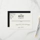 This RSVP or response card can be customised with your own date. The simple card has spots for your guests to write in their name(s) and to check off whether or not they will be attending and fill-in the total number of guests in their party. Black lettering is set against a soft ecru coloured background with black spiderweb accent in the upper corner.