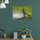 A beautiful Mockingbird bird, drinking water from a birdbath, as a Poster or Print.