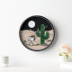 The size of the clock is dramatic and the abstract alcohol ink design is soothing and intricate at the same time. I chose the black frame that adds pop to the blue and gold design. The gold printing would be better in a slightly darker or larger font. I love it and I’m looking for just the right place in ny new apartment. I would recommend this clock for a personal gift or a present. I feel that the quality is excellent for the money! I’m a bit of a clock nut so I’m pretty particular about my purchases. The clock is larger in diameter than many if the clocks I have, so it stands out very well. I think a slightly darker printing color and a moderately larger size would best suit a professional decor or add more impact in a work place item.