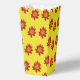 Spiky orange and red flower on yellow background pattern design.