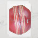 The artwork features a single, red cricket ball in a close-up view against a clean white background. The textured leather surface and the prominent raised seam with its white or cream-coloured stitching are clearly visible, emphasising the ball's physical characteristics crucial for spin bowling. The slightly worn appearance suggests its active role in the game.