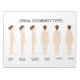 Spine deformation types and healthy spine comparison diagram poster with backbone curvatures. Female file and back view. Chiropractic information
