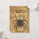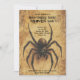 This Halloween party invitation features a vertical design with a large, eerie spider positioned at the bottom centre. The spider's dark, hairy body and detailed legs create a chilling focal point that immediately captures attention. The background is textured like old, creased paper, giving the invitation a worn, vintage look that adds to the creepy vibe, evoking the feeling of something ancient and mysterious.