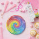 A colourful array of bright rainbow colours that have a transparent like texture to it, swirled to give it a spinning kind of feeling.