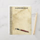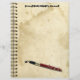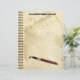 Here's a really fun stationary. The look of an old spiral bound journal. The page looks stained as though it's been around the world with your. An ink pen at the bottom with an ink stain. The text has the look of worn type. This stationary will make it fun to write letters.