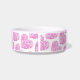 This is a heavy, durable bowl decorated with Tibbies of many colors, the perfect size for hungry/thirsty Tibs. The design is interesting and printing clear.