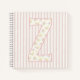 Pink striped notebook, personalised with the letter Z in a floral pattern.