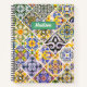 Mexican, Moroccan, Sicilian Mediterranean green tiles notebook. Chic floral botanical citrus garden pattern inspired by the summer bright italian themed art of majolica Sicilian ceramic tiles in pink yellow and blue. A fun style bright design for home decor, clothes, mobile and Ipad cases, invitations and much more. You can change all text colours and fonts, click to customise further underneath the text customisation area this will take you into the design tool. A unique gift for birthdays, holidays and any special occasion. Whether for valentines day, Christmas or as a gift in general it makes a great gift idea