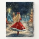 Alice in Winterwonderland inspired notebook, girl strolling down a fantastically lit winter path aglow with christmas trees and a starry sky. The phrase Surround yourself with people who make your heart smile is on the cover. You can also personalise the name and monogram.