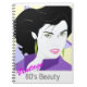 A spiral pad, with a beautiful woman's face, inspired by the vintage art of the 1980s, with callous colors but with a sophisticated and minimalist touch.