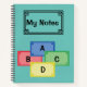 Label shapes with squares in corners. Black outline at top reads "My Notes." Four other labels in primary colours (blue, red, green, yellow) are labelled "A", "B", "C", "D". Background is a sea-green colour.