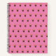 Spiral notebook featuring a repeating fuchsia flower pattern on a pink background based on a watercolour painting by the artist Alan Skyrme