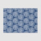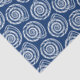 Tissue paper in a block print pattern, based on a spiral seashell, in white on a cobalt blue background