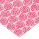 Table runner in a block print pattern, based on a spiral seashell, in deep fuchsia pink on a pastel coral pink background