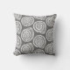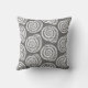 Throw pillow in a block print pattern, based on a spiral seashell, in white on a deep graphite grey / grey background