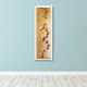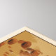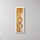 This wrapped canvas offers moody light shining on a motionless segment of simple globe and pitcher shaped terracotta wind chimes that are set in a spiralled effect. This photo is framed by a thin brown line and an ivory border.  The image was altered with photo editing software for a rough painted effect.