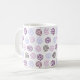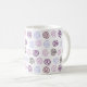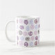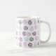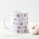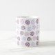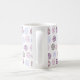This mug has an art deco design of spirals in shades of purple, light blue, and brown, on a field of white. If you want the same design with different colours, message me.