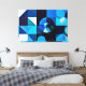 This abstract canvas presents a geometric design in deep and light blue tones, creating a dynamic composition of concentric circles and angular shapes. Soft color transitions and clean lines evoke a sense of calm, serenity and balance. Perfect to add a modern and sophisticated touch to any space, whether it is in the home or office.