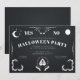 Spirit Board Celestial Black and White Halloween Party Invitation. This custom Halloween party invite has a black textured background with white celestial sun and moon graphics to look like a spirit board. This spooky gothic invitation can be used for Halloween parties, October Bridal Bachelorette parties, New Orleans Bachelorette, or any spooky themed wedding! All party detail text is editable! Don't forget to check out the matching items in the collection!