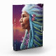 Imagine gazing upon the acrylic block that showcases an ethereal Native American woman, her spirit as ancient as time itself. With every stroke of the digital brush, we've captured the serene wisdom in her eyes and the grace in her posture. Her pastel and blue hair, adorned with delicate flowers, dances like a gentle breeze through a meadow.