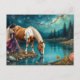 Spirit of Young woman in a colorful gown, watches over a horse drinking water