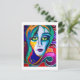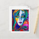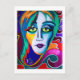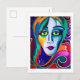 Uniquely surreal postcard that will make your greeting stand out! Postcard design is a vivid portrait with swirling teals, magentas, and deep blues. Blank on the back with small Zazzle logo and artist's name on the bottom.