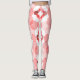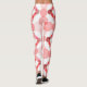 These leggings have a geometric design of concentric circles in shades of red forming two squares on a field of white.