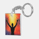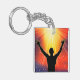 Spiritual Man Silhouette Raising Arms Key Ring