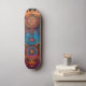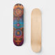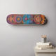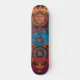 This skateboard design has a colourful illustration of a mystic entity and cosmic symbols.