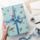 Spitfire War Planes Pattern on Pastel Blue Wrapping Paper