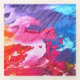 An abstract design mimics splashes of paint in a variety of bright colours.
