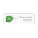 Splash of watercolor in the left corner with a custom monogram and a return address aligned on the right in sans serif font.