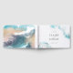 This chic and modern wedding guest book features a white background with splashing waves in turquoise blue and faux/fake gold. The reverse side features an abstract ocean texture. Personalize it for your needs. You can find matching products at my store.