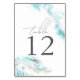 This chic and modern wedding table number features a white background with splashing waves in turquoise blue and faux/fake gold. Personalize it for your needs. You can find matching products at my store.