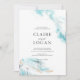 This chic and modern wedding invitation features a white background with splashing waves in turquoise blue and faux/fake gold. The reverse side has details and accomodation area with QR code. Personalize it for your needs. You can find matching products at my store.