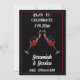 This playful design shows two wine goblets splashing as a toast is made to the new couple.